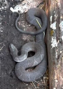 Over the last month, we have received a few reports of Common Watersnakes found quite a distance from water. It seems likely that their normal foraging areas (wetlands) dried out, and they are hiding out while waiting for rain, but this is just a guess. The photo below was taken by Kathy Mandigo in Salisbury. Common Watersnakes are a thick, heavy-bodied snake. They are not aggressive, but they are quick to defend themselves when handled. They are curious and, when in the water, will check out small movements, hoping to find frogs or fish. I have had them check out my feet while wading and fishing. We received a report of one causing a mass exodus of swimmers and waders at Sandbar State Park when it swam through the swimming area. Of course, the swimmers and the waders were in no danger.