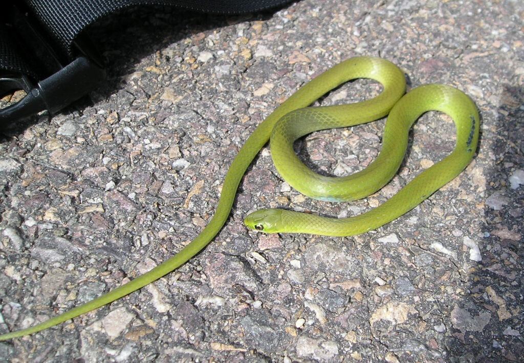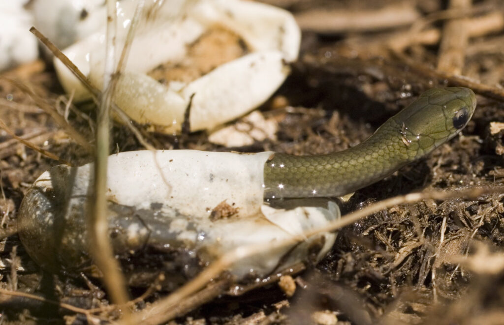 We have also received a handful of reports of Smooth Greensnakes over the last few weeks. Smooth Greensnakes lay eggs, but they retain their eggs within their bodies for a longer time than southern egg-laying snake species. As a result, the eggs hatch relatively soon after they are laid. Kiley Briggs took the photos below of Smooth Greensnake eggs and a young neonate hatching. Toby Alexander took the photo of the adult.