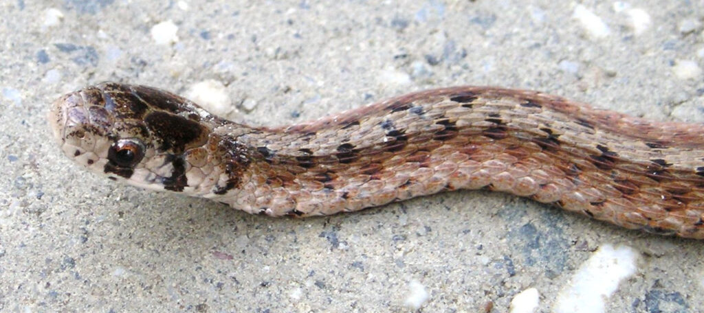 The photo of the Dekay’s Brownsnake below was taken by Toby Alexander. The black marks on the top of the head, under the eye, behind the eye, and on the sides of the neck are great field marks. Plus, brown snakes always have a brown background color, as their name implies.