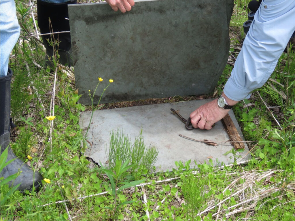 On November 6, we finished our fall snake monitoring for the year. We have a series of slate sandwiches (shown above and below) that we check weekly every other fall. We have been monitoring this transect of 45 covers since 2001 as part of the Colby Hill Ecological Project in Lincoln. The photo below shows the two slates and the divider that make up each cover object. The slate holds the heat and provides cover from predators. On our last day, we found one adult and one juvenile Red-bellied Snake under the covers.
